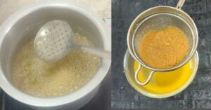 घी बनने पर गेस बंद कर दे ,ठंडा हो जाये तो छान ले |
