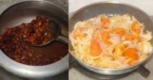 Rajma Recipe : राजमा रात में भिगो दे सुबह कूकर में पानी ,नमक डाल कर राजमा गल जाने तक सिटी लगा ले | फ्राई पेन में छोटा चम्मच तेल डाल कर कटे प्याज़ डाल दे 2 मिनट बाद कटे टमाटर डाल कर चला ले |